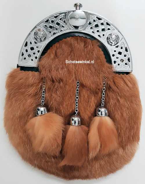 Sporran Celtic, hert, 3 tassels, bruin