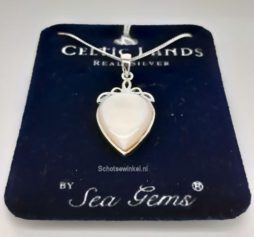 Prachtige ivoorkleurig Celtic hearth met echt zilveren ketting